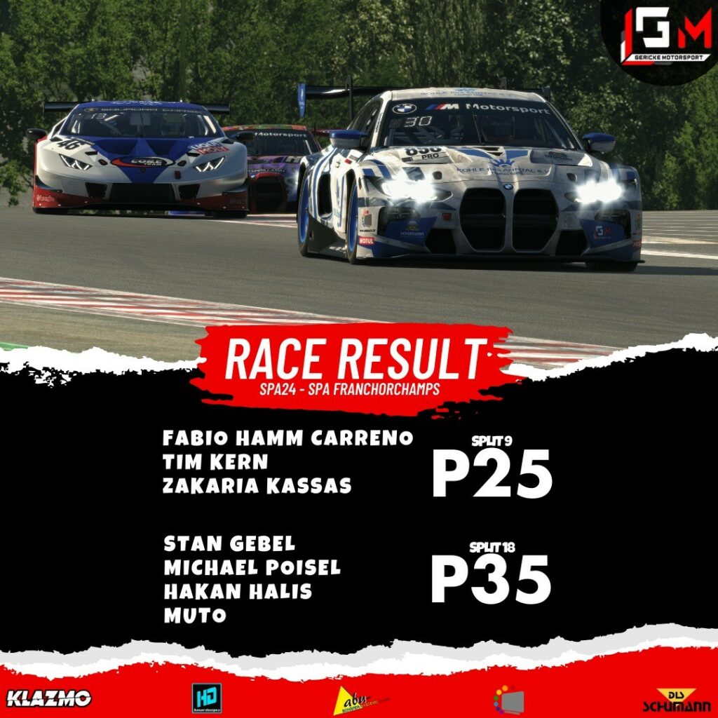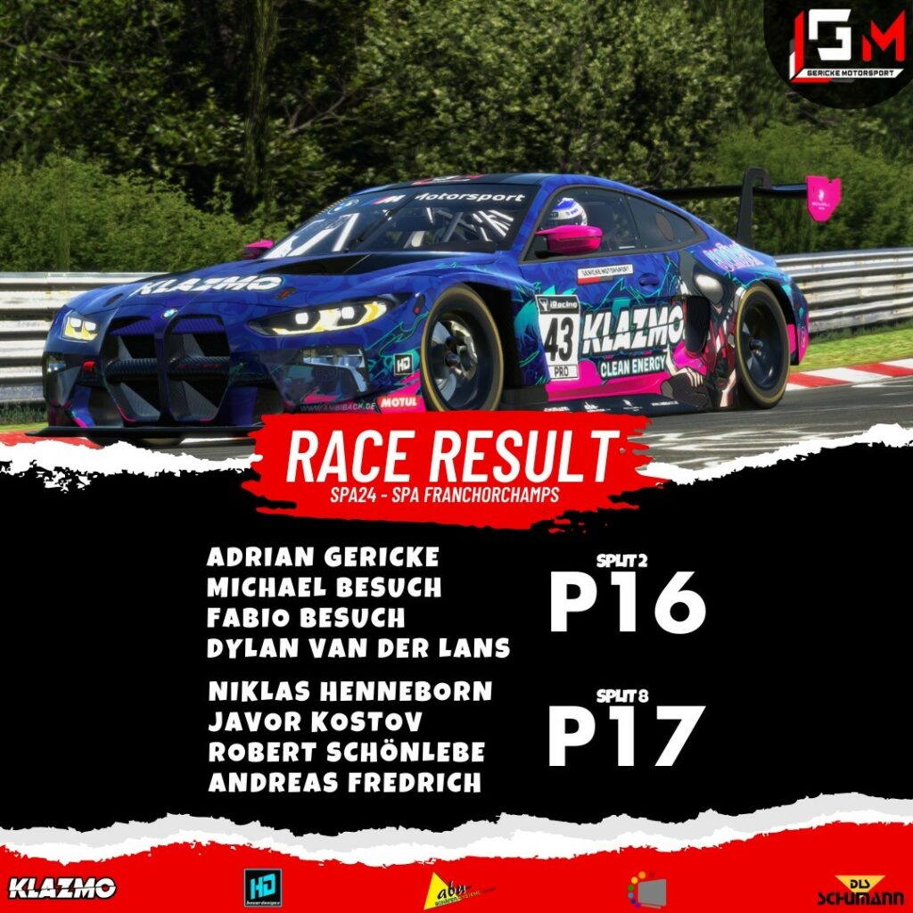 24h Spa – 2023! 27. Juli 2023 by GM | Lene An diesem Wochenende gab es keine absoluten Topergebnisse für unser Team. Doch während der Rennen zeigten unsere Fahrer dennoch immer wieder, was sie können. Als Team haben wir viel gelernt! Sportliche GrüßeGericke Motorsport | PR